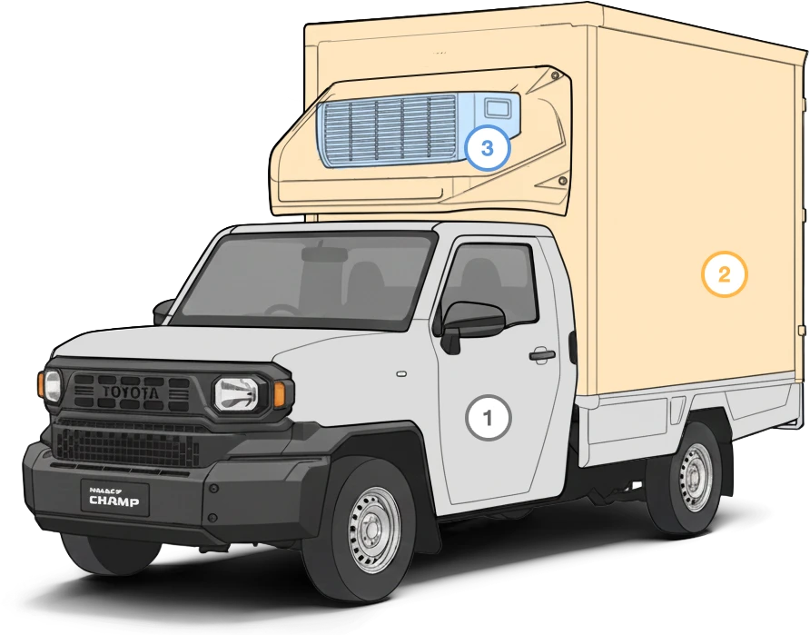 รถกระบะห้องเย็นประกอบไปด้วย 3 ส่วนหลักๆ ดังนี้